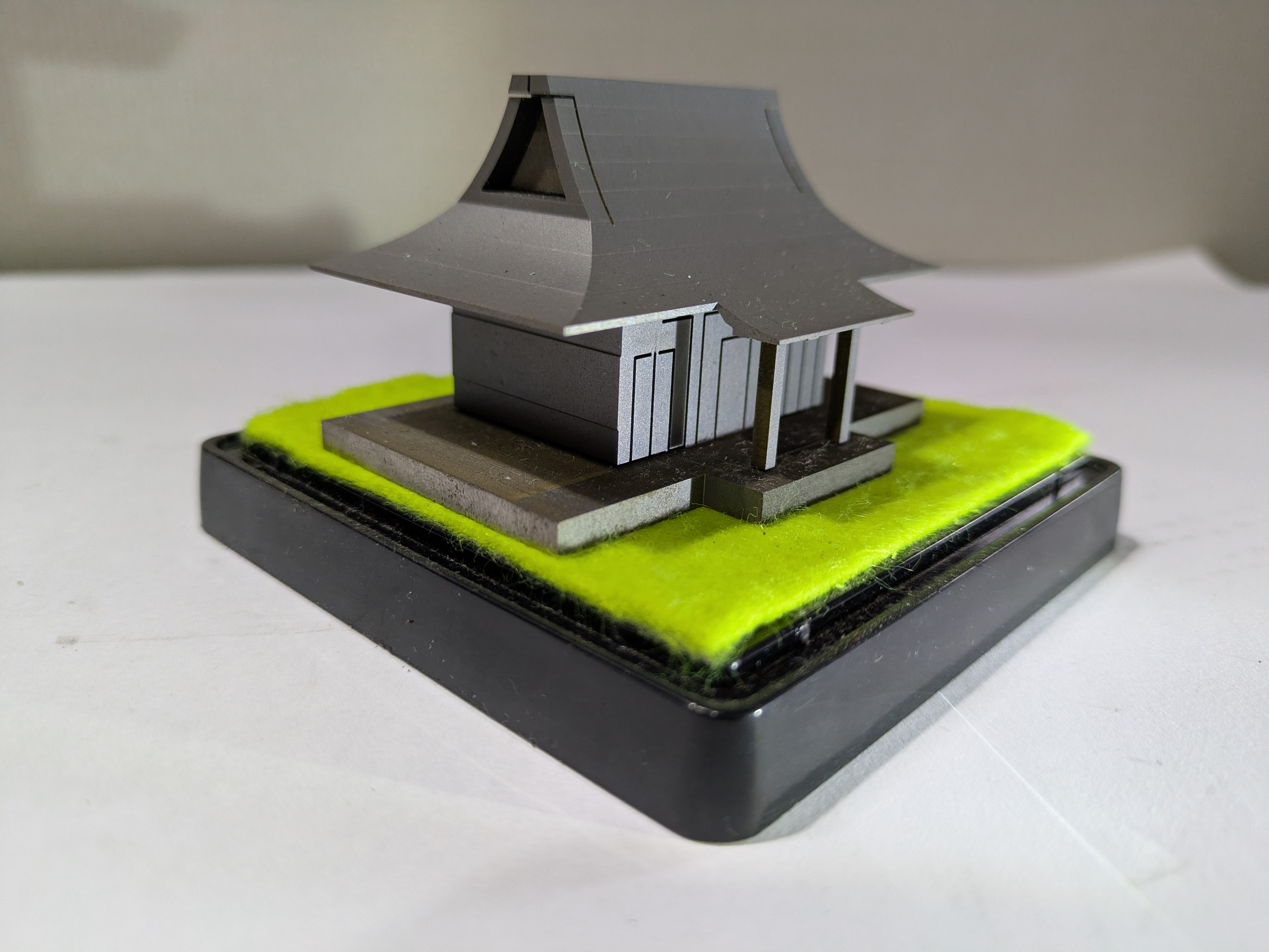 デザイン・加工ともに並々ならぬテクニックを要した作品です。各工程の加工サンプルも工場に展示しております。